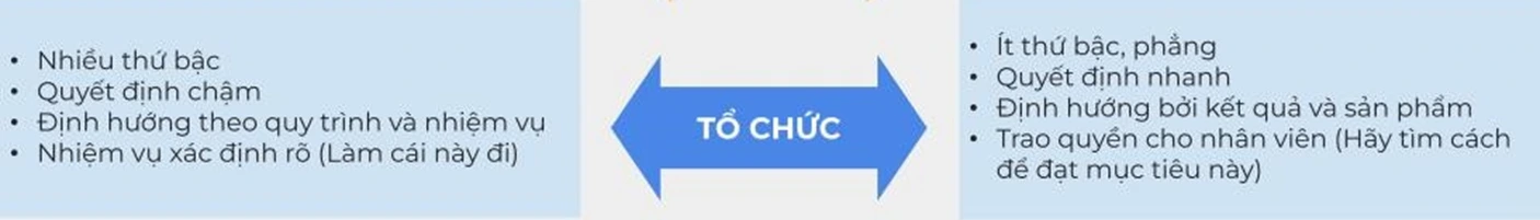 Từ góc nhìn này có thể thấy, việc khuyến khích sự chủ động và sáng tạo của nhân viên là một đặc điểm thường thấy trong văn hóa số của nhiều doanh nghiệp hiện nay. Trong mô hình truyền thống, tổ chức thường vận hành theo cấu trúc phân cấp rõ ràng, các quyết định được cân nhắc qua nhiều cấp quản lý để đảm bảo tính ổn định và tuân thủ quy trình. Ngược lại, trong môi trường số, nhiều doanh nghiệp xây dựng mô hình tổ chức linh hoạt hơn, nơi các quyết định được đưa ra nhanh chóng dựa trên dữ liệu và sự phối hợp giữa các nhóm.